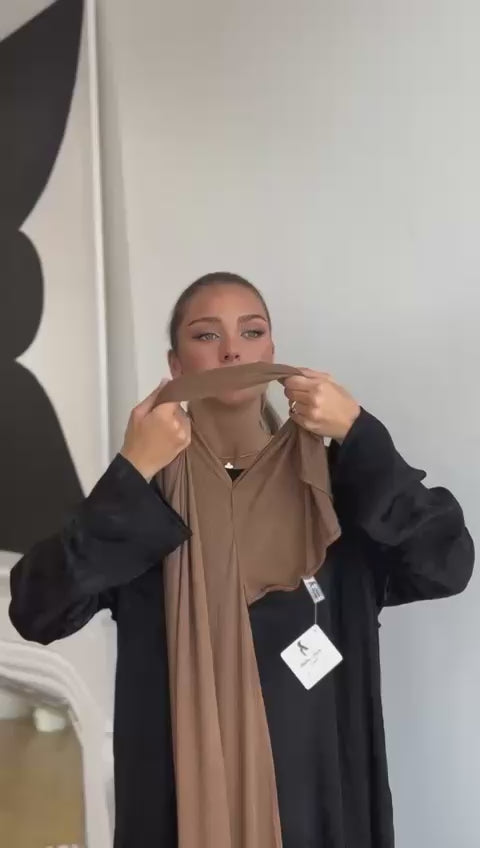 Effortless elegance meets comfort with our Jersey Instant Hijab. Pre-styled and ready to wear, this versatile piece requires no pinning or adjusting. Crafted from soft, breathable jersey fabric, it drapes beautifully while staying secure throughout your day. Perfect for busy lifestyles.